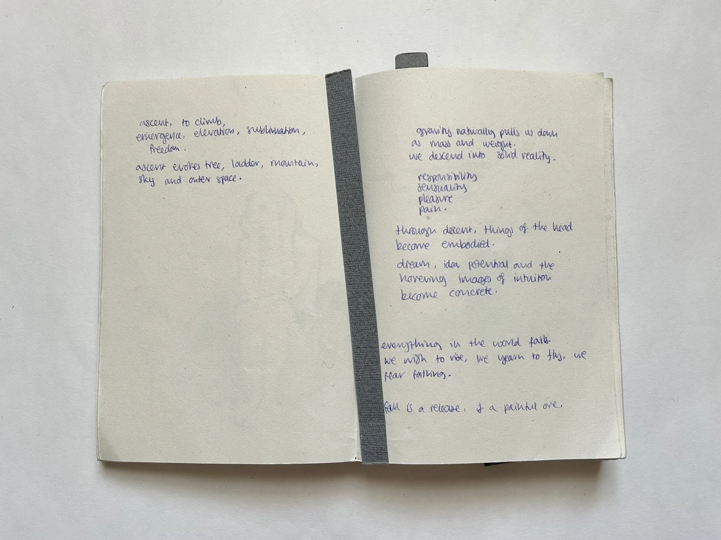 Lightning makes me think about verticality, the parallel, conducting from the sky like a puppet master’s strings, and visible plumb lines in drawings and paintings. I imagine suspensions through the sky, secrets and knowledge layered and stacked vertically through time and space. Things that aren’t visible but that move upwards and downwards, and perhaps disappear into the ground. Alongside my interest in lightning, this past year, especially, I’ve found myself attracted to bodies of water. I’m not very water-inclined as a person, but I often find I can’t look away. There’s something about the idea of being submerged in water and therefore suspended, but that without that actually happening to me, my mind is left in this state of imagining and filling in, or jumping over, the gaps in what that would feel like.